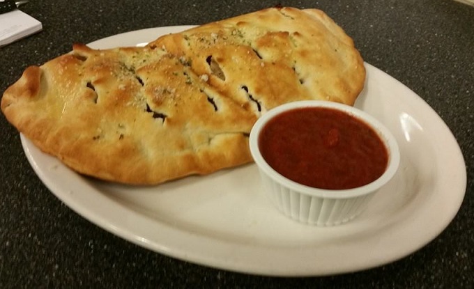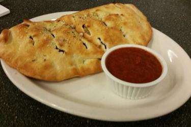 Calzone Calzone Comes with canadian bacon, fresh ricotta, and mozzarella cheese baked into a golden brown pocket. Add toppings for more flavor!Additional Toppings: Italian Sausage, Pepperoni, Canadian Bacon, Chicken, Green Peppers, Onions, Bacon, Mushrooms, Black & Green Olives, Pineapple, Garlic, Jalapeno, Artichokes, Tomatoes, Spinach, Feta Cheese, Pepperoncinis, Sun-Dried Tomatoes 12" $ 9.00 16" $ 17.00