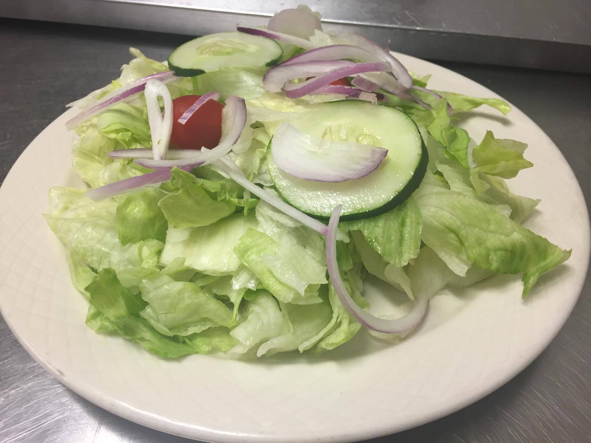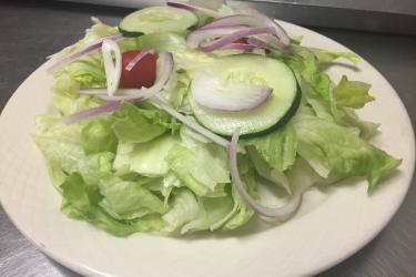Large Dinner Salad Large Dinner Salad Iceberg lettuce with cucumber, red onion, red cabbage and tomato with your choice of dressing. Dressings: Ranch, French, Italian, Blue Cheese, 1000 Island, Caesar, Oil & Vinegar, Balsamic Vinegar, Greek $4.00