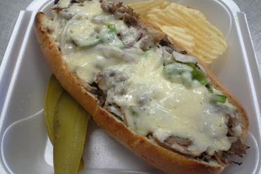 Seasoned philadelphia cheesesteak with Green Peppers, Mushrooms and Onions, with melted Mozzarella cheese on a toasted French Italian bread. Add extra topping for .50 cent each