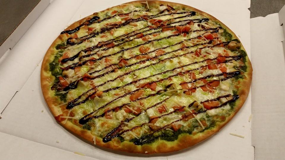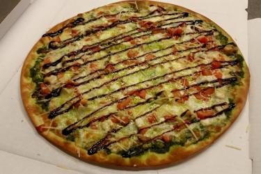 Pesto Pizza Pesto Pizza Pesto Sauce, chicken, tomato, onion, parmesan cheese, with a balsamic glaze 12" $ 18.00 14" $ 21.00 16" $ 25.00 30" $ 45.00