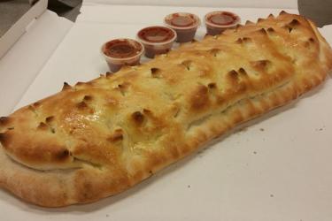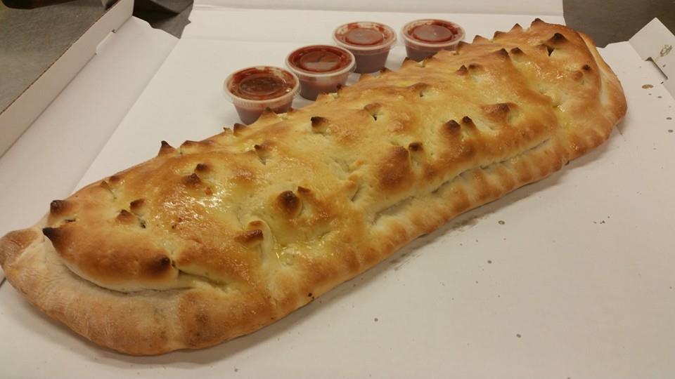 Stromboli Stromboli A traditiona Stromboli come with juicy steak & mozzarella cheese baked into a golden brown pocket.Additional Toppings: Italian Sausage, Pepperoni, Canadian Bacon, Chicken, Green Peppers, Onions, Bacon, Mushrooms, Black & Green Olives, Pineapple, Garlic, Jalapeno, Artichokes, Tomatoes, Spinach, Feta Cheese, Pepperoncinis, Sun-Dried Tomatoes 12" $ 9.00 16" $ 17.00